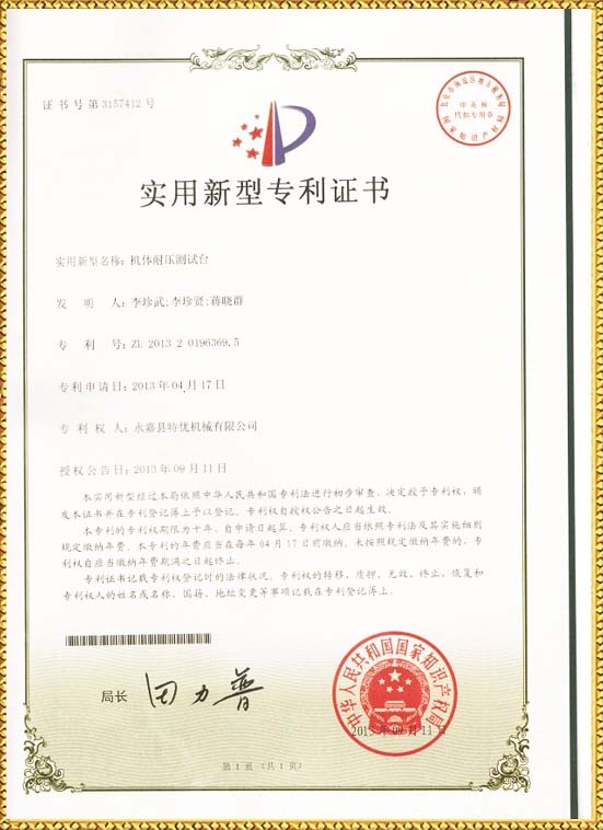 浙江省制造業(yè)首臺(套)產(chǎn)品證書