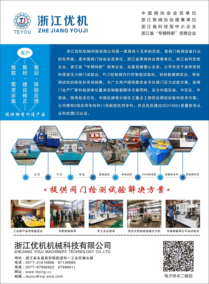 浙江優(yōu)機機械科技有限公司憑借研發(fā)投產(chǎn)的智能集成密封液壓機,成功入榜浙江省先進制造業(yè)首臺套企業(yè)名單,浙江優(yōu)機機械科技有限公司多個產(chǎn)品通過國家閥門(浙江)檢測中心檢測,相關(guān)技術(shù)經(jīng)浙江省省級工業(yè)新產(chǎn)品新技術(shù)鑒定,擁有2項發(fā)明專利和11項新型實用專利,是浙江省泵閥協(xié)會理事單位、浙江省“專精特新”培育企業(yè)、浙江省專利示范企業(yè)、浙江省科技創(chuàng)新型企業(yè)、溫州市科技創(chuàng)新企業(yè)、永嘉縣百星企業(yè)、永嘉縣愛心企業(yè)、中國石油準入供應單位、中國寶豐能源準入供應單位、山東核電設(shè)備有限公司合格供應商。